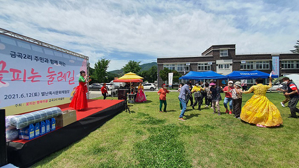 꽃피는 행복마을’ 법원읍 금곡2리 마을주민과 함께하는 ‘꽃피는 둘레길’이 성황을 이뤘다.